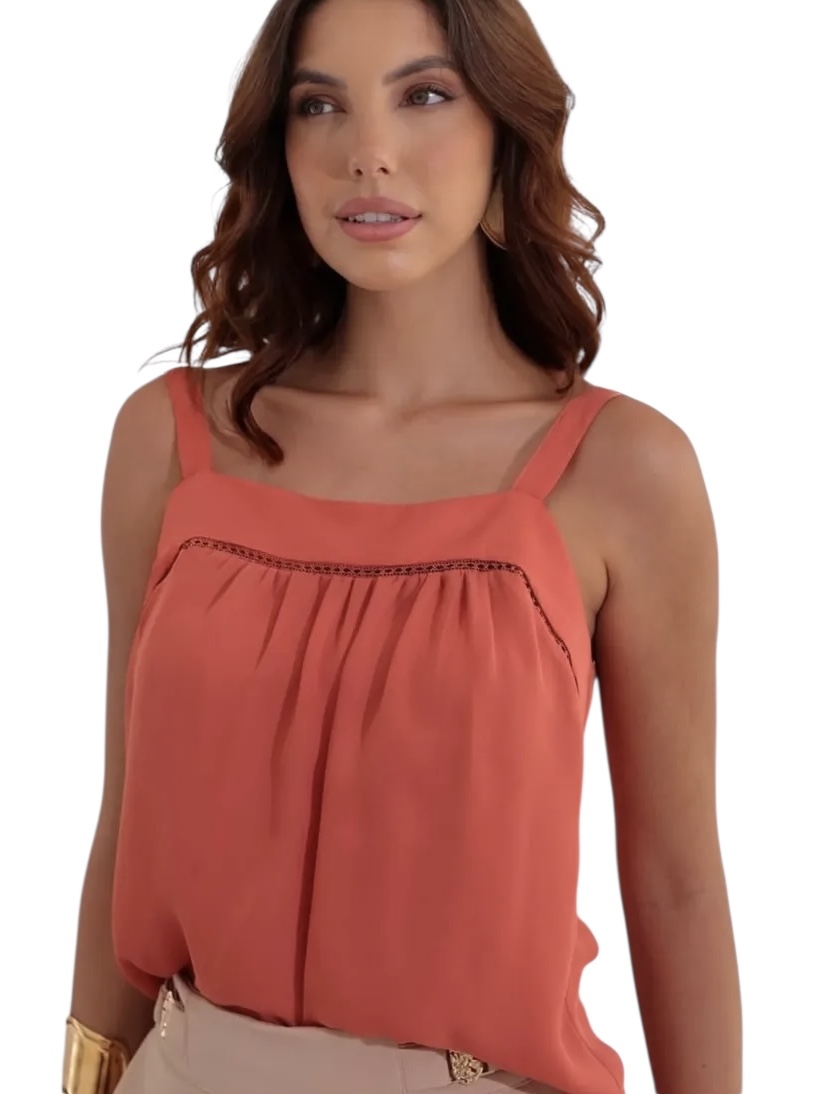 Blusa Alça Renda Colo Crepe
