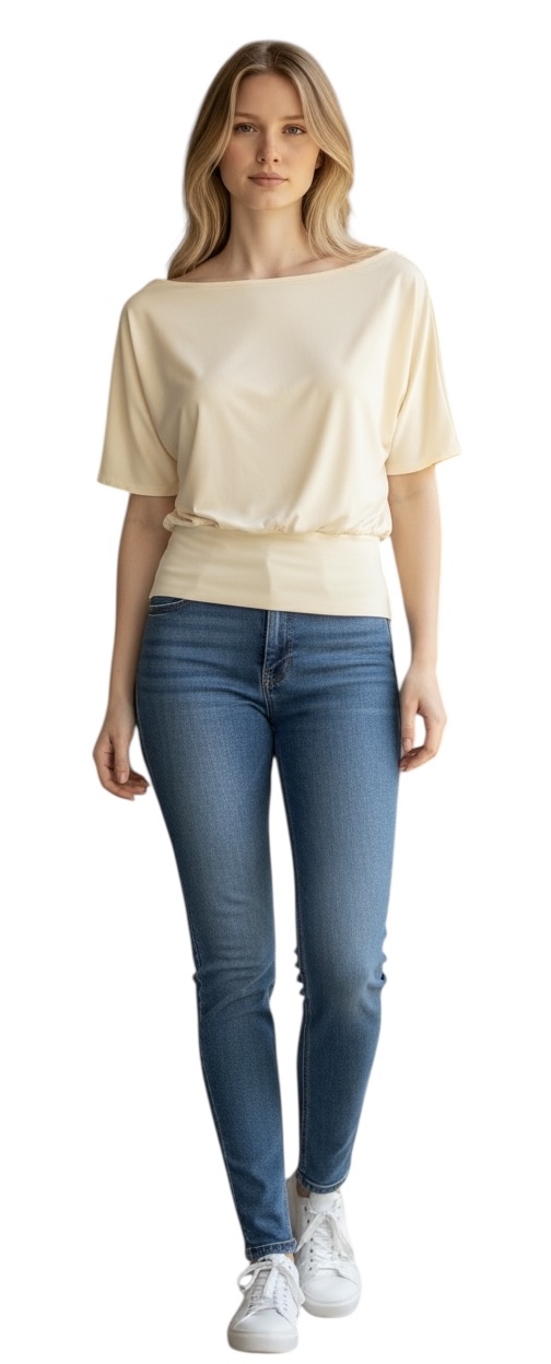 Blusa Manga Curta Elástico Cintura Viscomalha