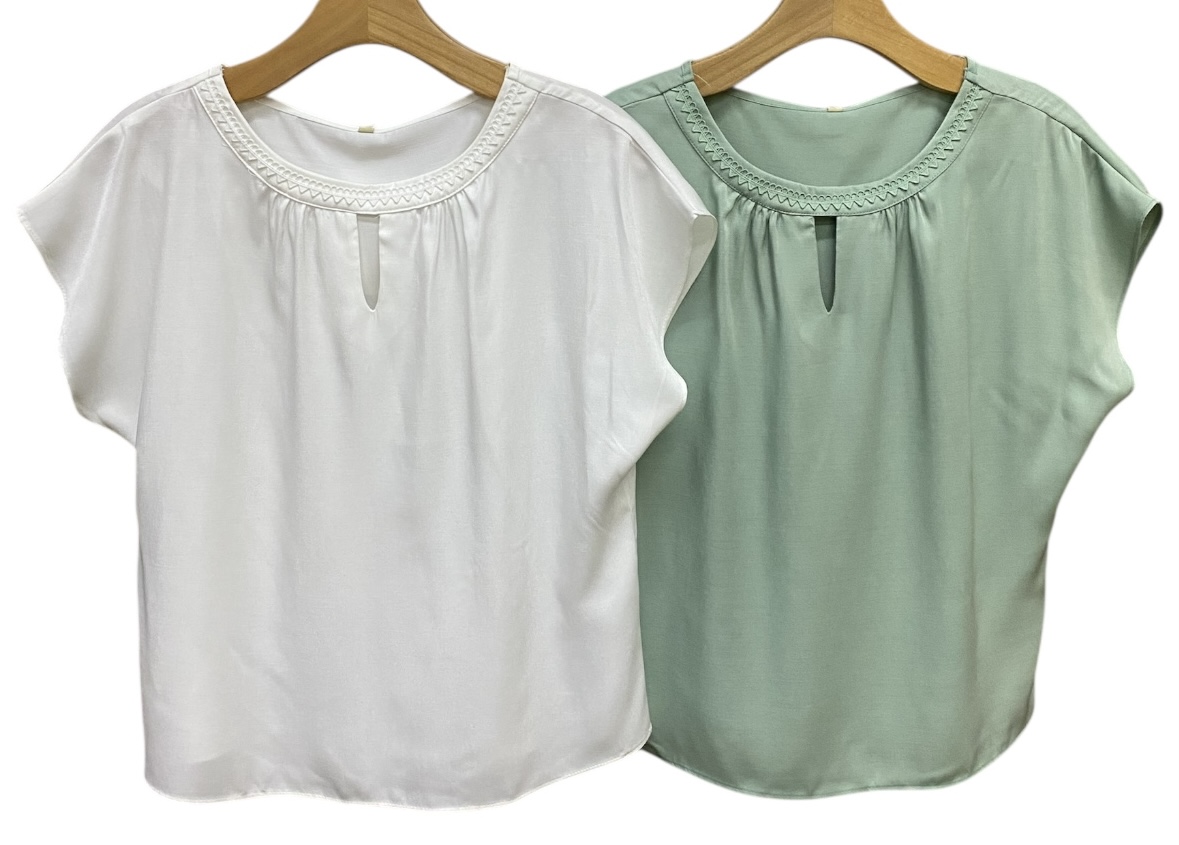 Blusa Manga Curta Renda Gola Crepe