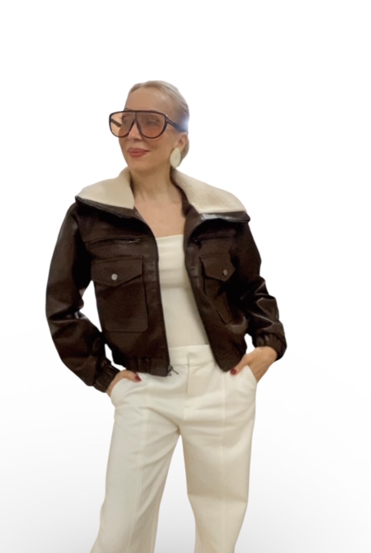 Jaqueta Bolsos Frontal Zíper Couro Ecológico