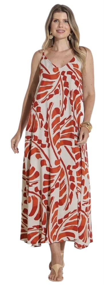 Vestido Alça Midi Estampado Viscose